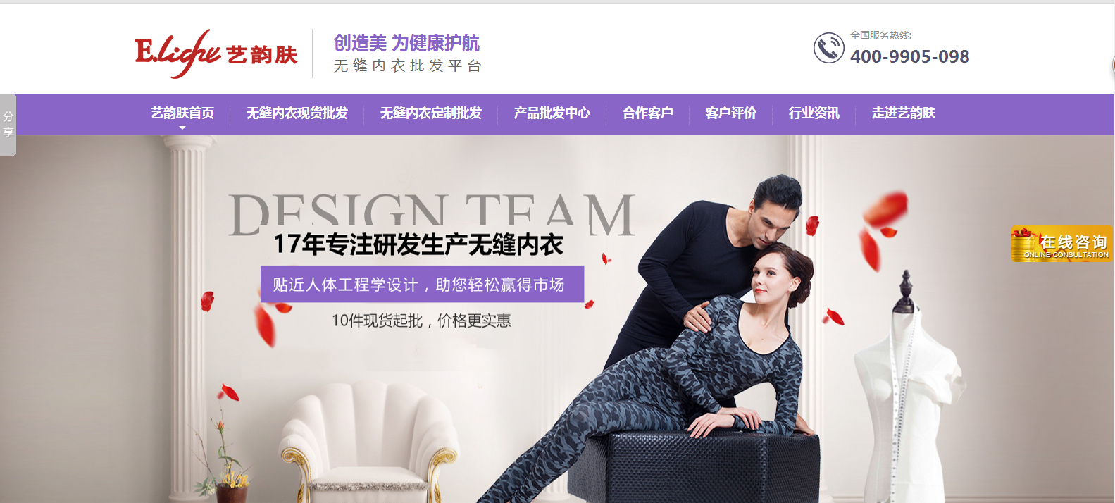 - 艺韵肤无缝内衣批发营销型网站建设案例欣赏 -